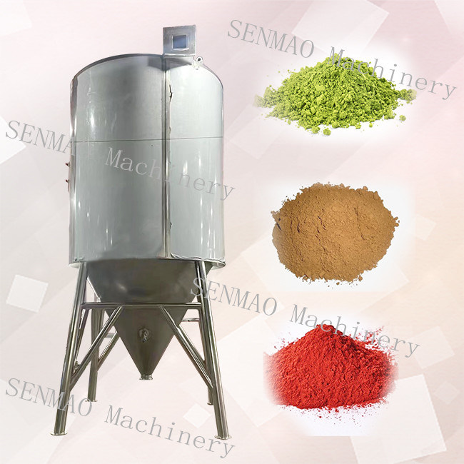 熱気は,フィルタリングと加熱後,空気分流器の機能の下で,スピラル形で乾燥機に入ります.塔の上の高速回転式原子化器を通過することで,液体原料は非常に細い霧粒に噴射されます熱い空気と接触する非常に短い時間を通して,液体は最終的な固体粉末製品に乾燥することができます.最終製品は,乾燥塔の底部とサイクロン分離器から継続的に放出されます.排気扇風機から排気します.